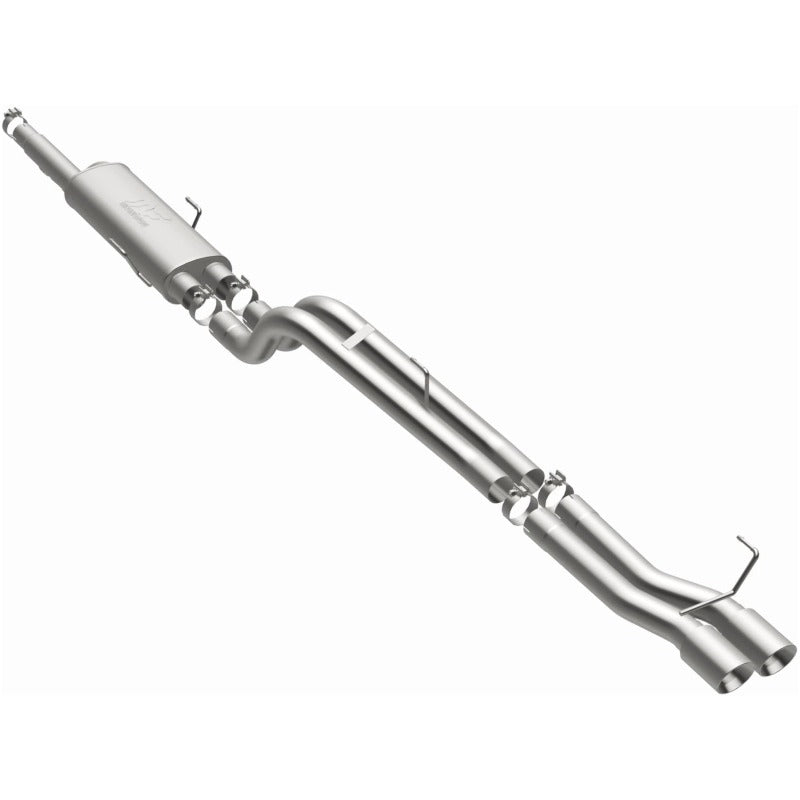 The MagnaFlow 2004-2005 Dodge Ram 1500 Street Series Cat-Back Performance Exhaust System 15832 brings out the personality of your 8.3L 2004-2005 Dodge Ram 1500 with our signature resonant, powerful engine tone and dyno-proven performance. Thanks to its fast-flowing, mandrel bent 3in. main piping and 1 Straight-Through mufflers ending in a Dual Straight Passenger Side Rear exit with 4in. Polished Welded-On Double Wall Angle Cut Folded Edge tips, this Dodge Ram 1500 exhaust kit has the performance chops to match its sporty sound and appearance. Upgrade your ride to the next level with an exhaust that has the pipes to put other Dodge Ram 1500's to shame. With this system your vehicle will be producing Aggressive exterior and Moderate interior sound levels while leaving other cars and trucks feeling envious at every stoplight. Exhaust kit 15832 features a cat-back layout that replaces your ride's stock exhaust components from near the catalytic converter on back. Extensive 3D scanning during development has resulted in a direct-fit design that you can easily install yourself. 15832 is produced using CNC precision robotic manufacturing techniques and is backed by MagnaFlow's 1-year limited finish warranty and limited lifetime construction warranty.