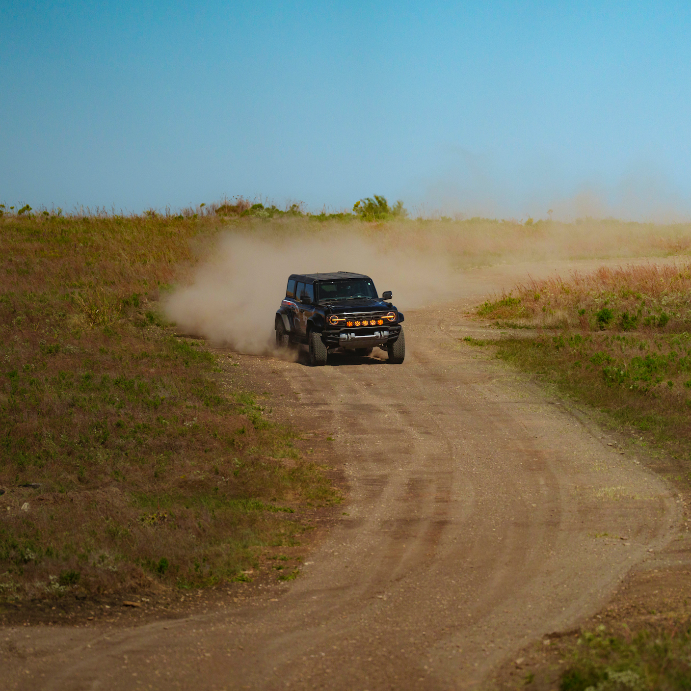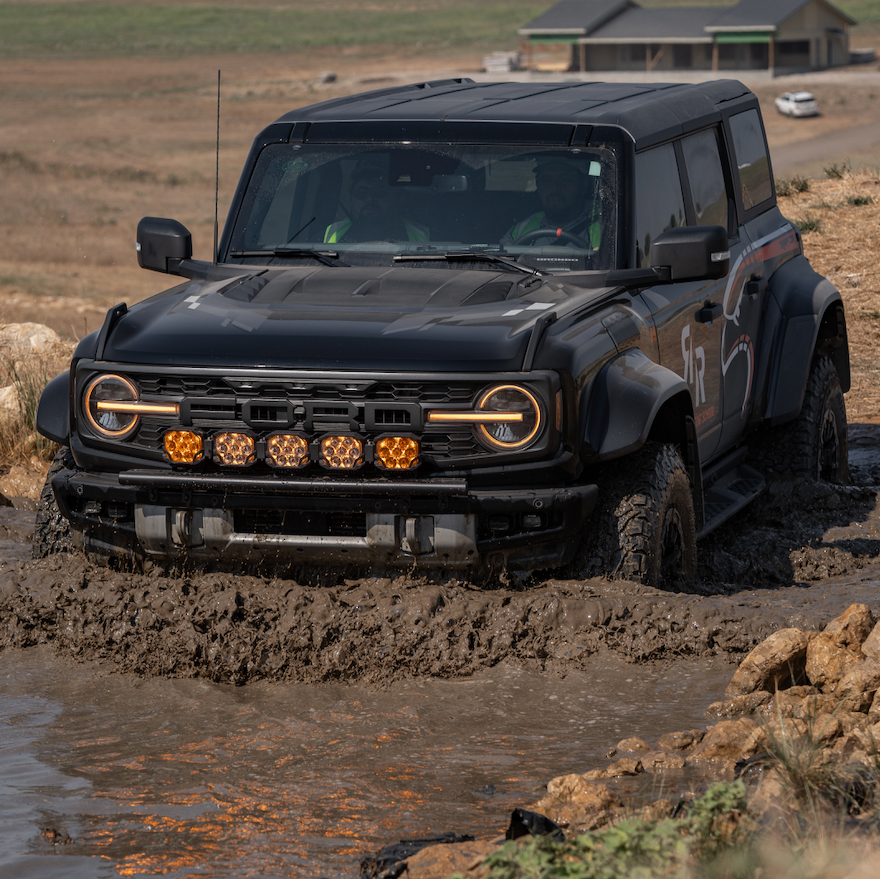 2024 Ford Bronco Raptor:418-hp twin-turbo 3.0-liter V-6 that makes 440 pound-feet of torque under the hood. The engine is paired with a 10-speed automatic transmission and an advanced four-wheel-drive system that works in concert with selectable drive modes. The Bronco Raptor also has an even beefier suspension setup than the standard version to best handle powering over sand dunes or jumping through the air, and it has a much wider track that's set up for better high-speed stability. The Raptorized Bronco is equipped with Fox adaptive dampers from the F-150 Raptor as well as standard 37-inch BFGoodrich K02 all-terrain tires.