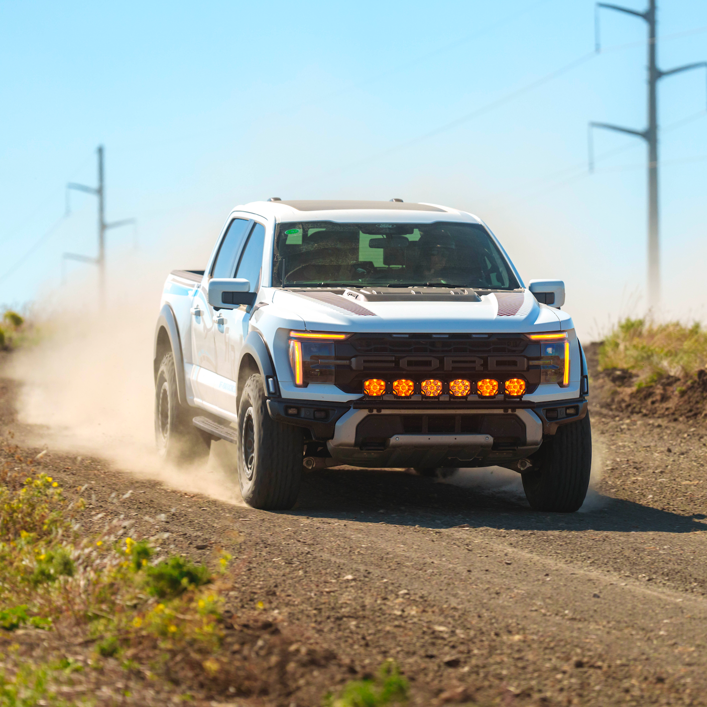 2024 Ford F-150 Raptor:F-150 features Ford's 450-hp twin-turbo 3.5-liter EcoBoost V-6 paired with a paddle-shifted 10-speed automatic transmission that feeds all four wheels through a standard four-wheel-drive system. Our vehicles have the 37-inch BFGoodrich All-Terrain T/A K02 all-terrain tires for better approach, departure, and breakover angles. The vehicles optioned with 37-inch tires also feature the new Fox Dual Live Valve shocks with continuously variable rebound control.